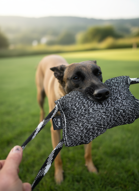 Pro K9 French Linen Tug with Two Handles Built for serious training and interactive play, this French linen tug features dual handles for secure grip and controlled engagement. The natural linen construction offers excellent durability while remaining gentle on canine teeth and gums. Ideal for foundation work, impulse control drills, and bonding sessions between handler and dog. The two-handle design accommodates multiple training scenarios—solo handler work or two-person exercises. Premium French linen resists fraying and maintains integrity through intensive use, making it a reliable choice for professional trainers and dedicated handlers alike.